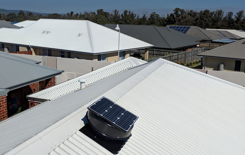 "They have reduced our lounge temperature (Cathedral Roof) by 8 -to 10 Degrees compared to the old Whirly bird – No needed the aircon this afternoon for the first time ever on a plus 30 degree day – its good"